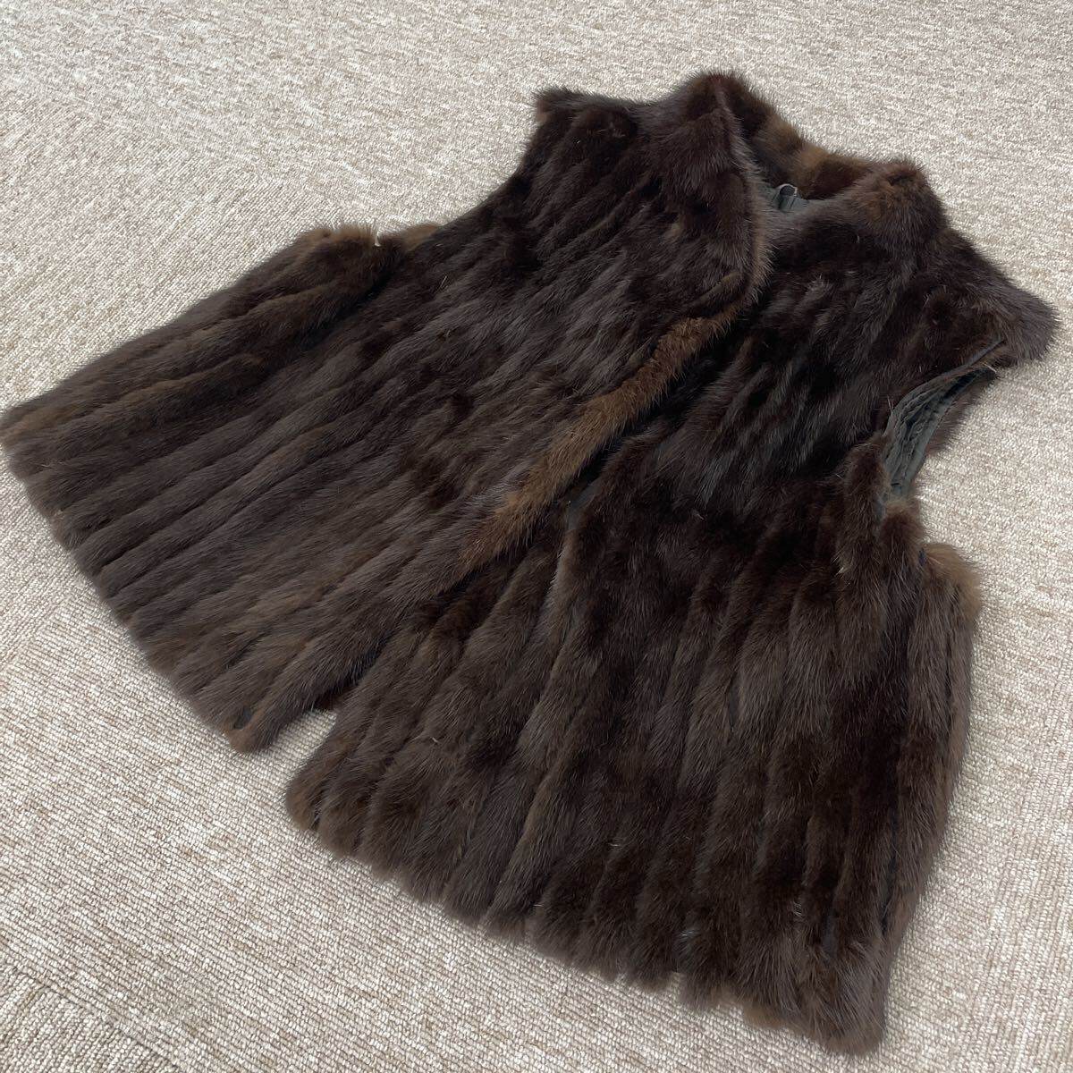 - 【989】毛皮 ミンクファー ファーベスト ミンク 毛皮 ダークブラウン レディース 艶あり 極上毛並み 上質 上質 本毛皮