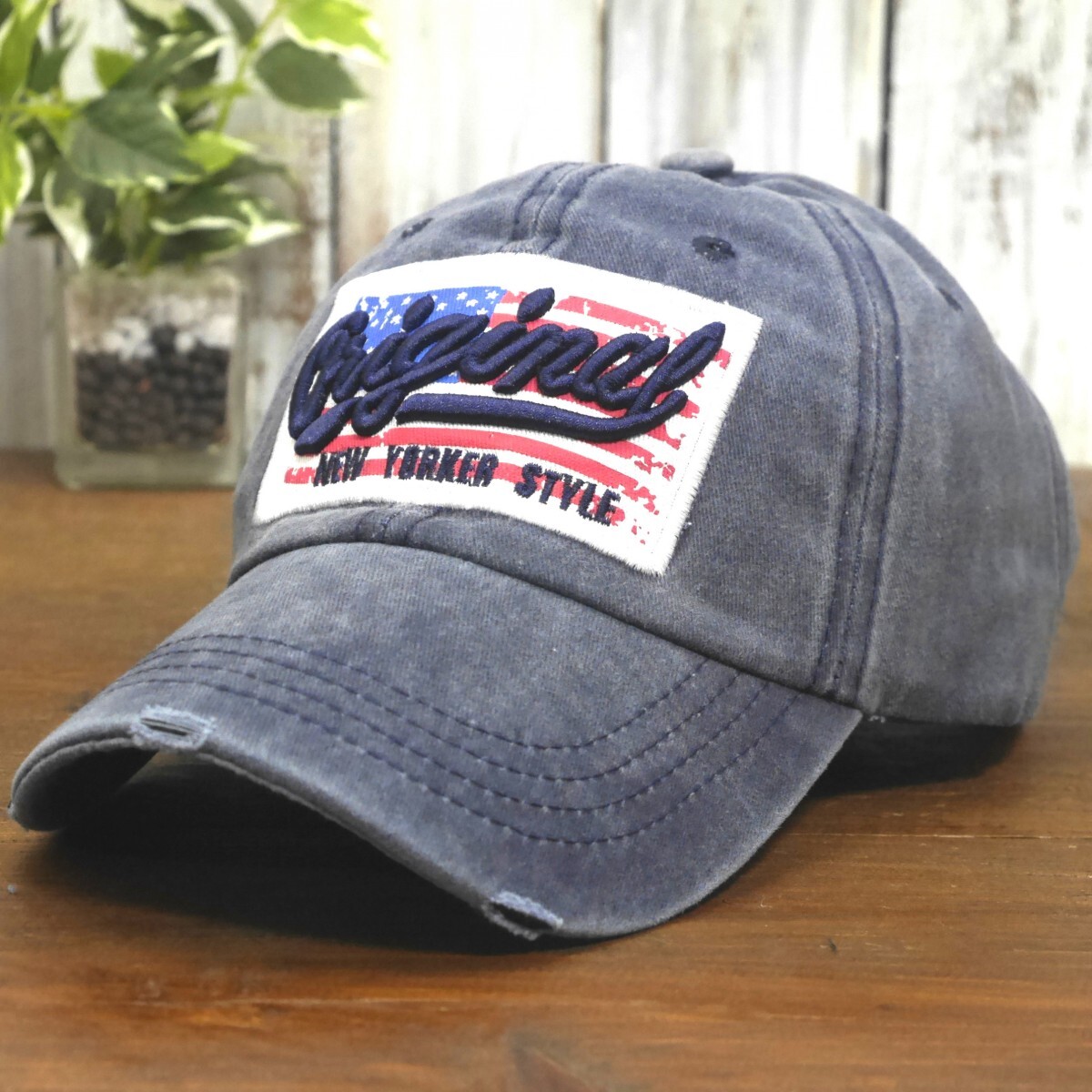 > Original ビンテージ ダメージ 色あせ キャップ ネイビー サイズ調整可能 送料\450 男女OK メンズ レディース