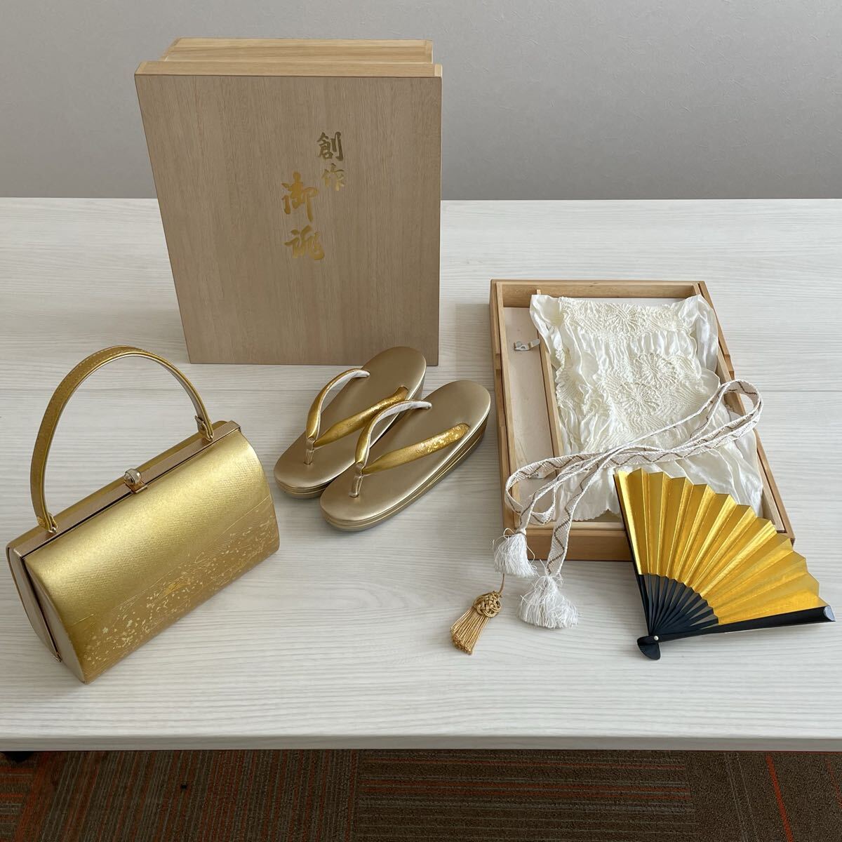 - 【B709-11】和装小物 草履 和装バッグ ゴールド 成人式 メーカ等の他詳細不明