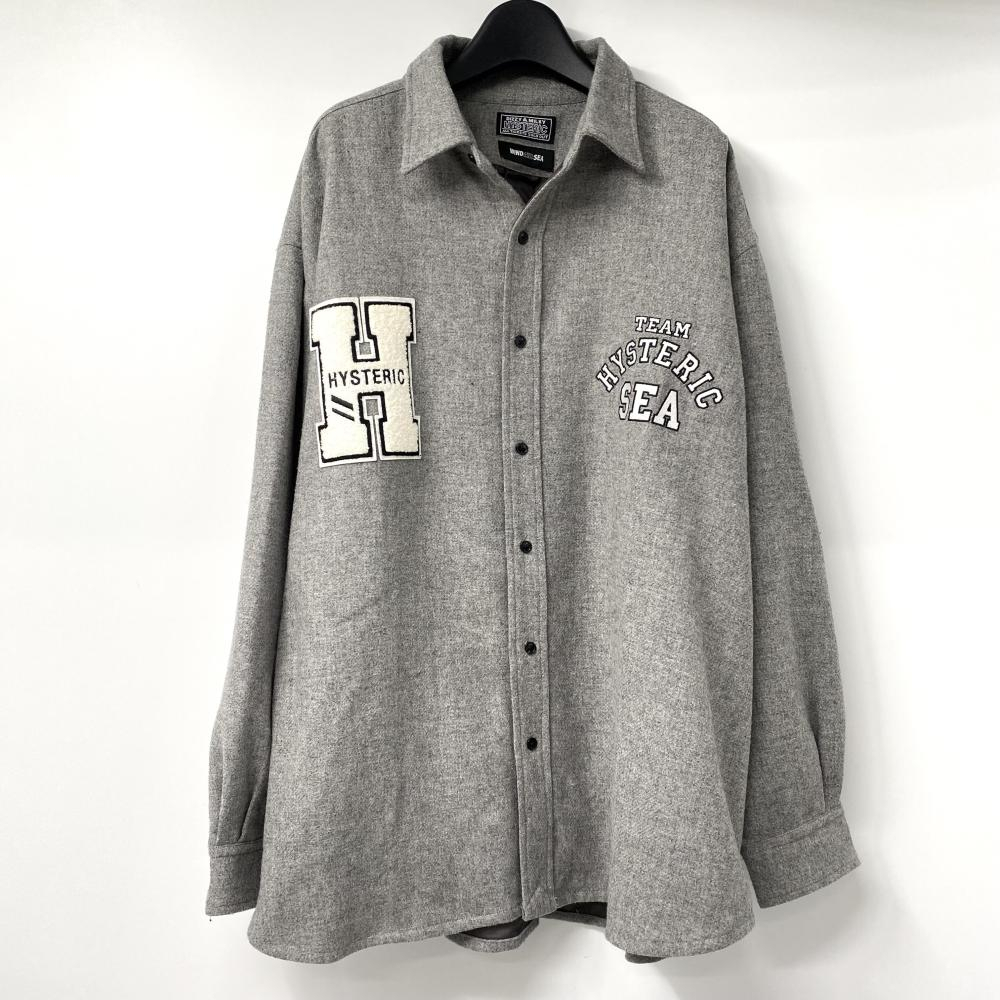 > 【中古】HYSTERIC GLAMOUR× WIND AND SEA ネルシャツ サイズXL グレー ヒステリックグラマー×ウィンダンシー[240017730172]