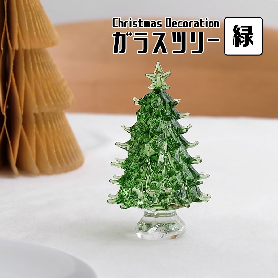 - ガラスツリー グリーン クリスマスデコレーション ミニツリー オブジェ 置物 装飾 XMAS Christmas 雑貨 インテリア 卓上 ディスプレイ 小物