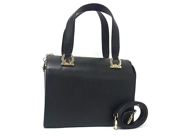 > 1円 Salvatore Ferragamo フェラガモ ガンチーニ レザー 2WAY クロスボディ ハンドバッグ ショルダー 斜め掛け ブラック系 FS6716