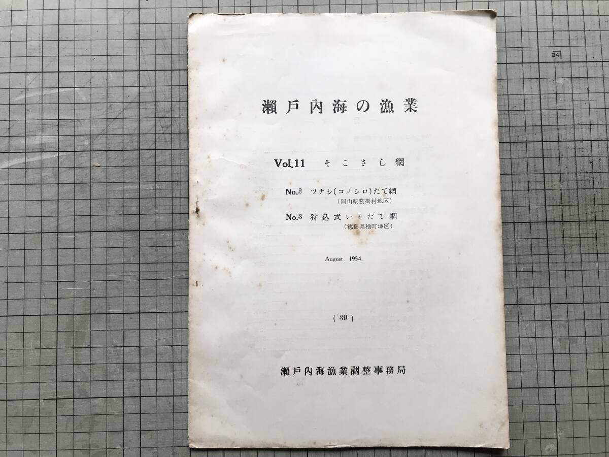 > 『瀬戸内海の漁業(39) Vol.11 そこさし網 No.2 ツナシ(コノシロ)たて網 No.3 狩込式いそだて網』瀬戸内海漁業調整事務局 1954年 00586