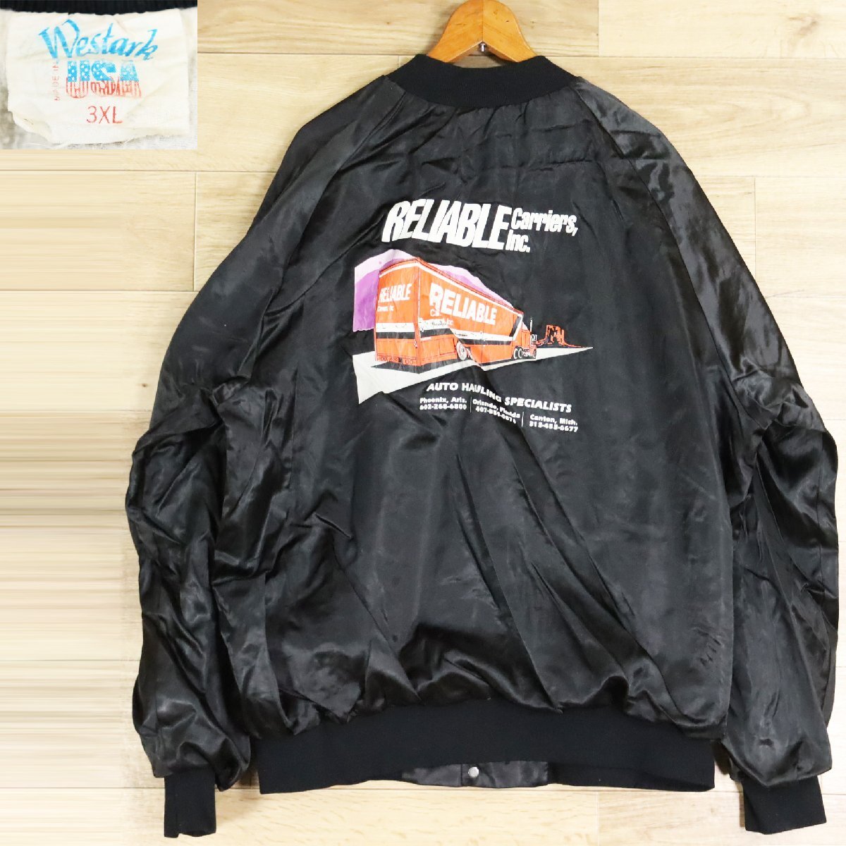 - G2S/D5.7-5 USA製 Westark ウエストアーク ナイロンスタジャン ジャンパー ブルゾン バックロゴ メンズ 3XL ブラック 古着