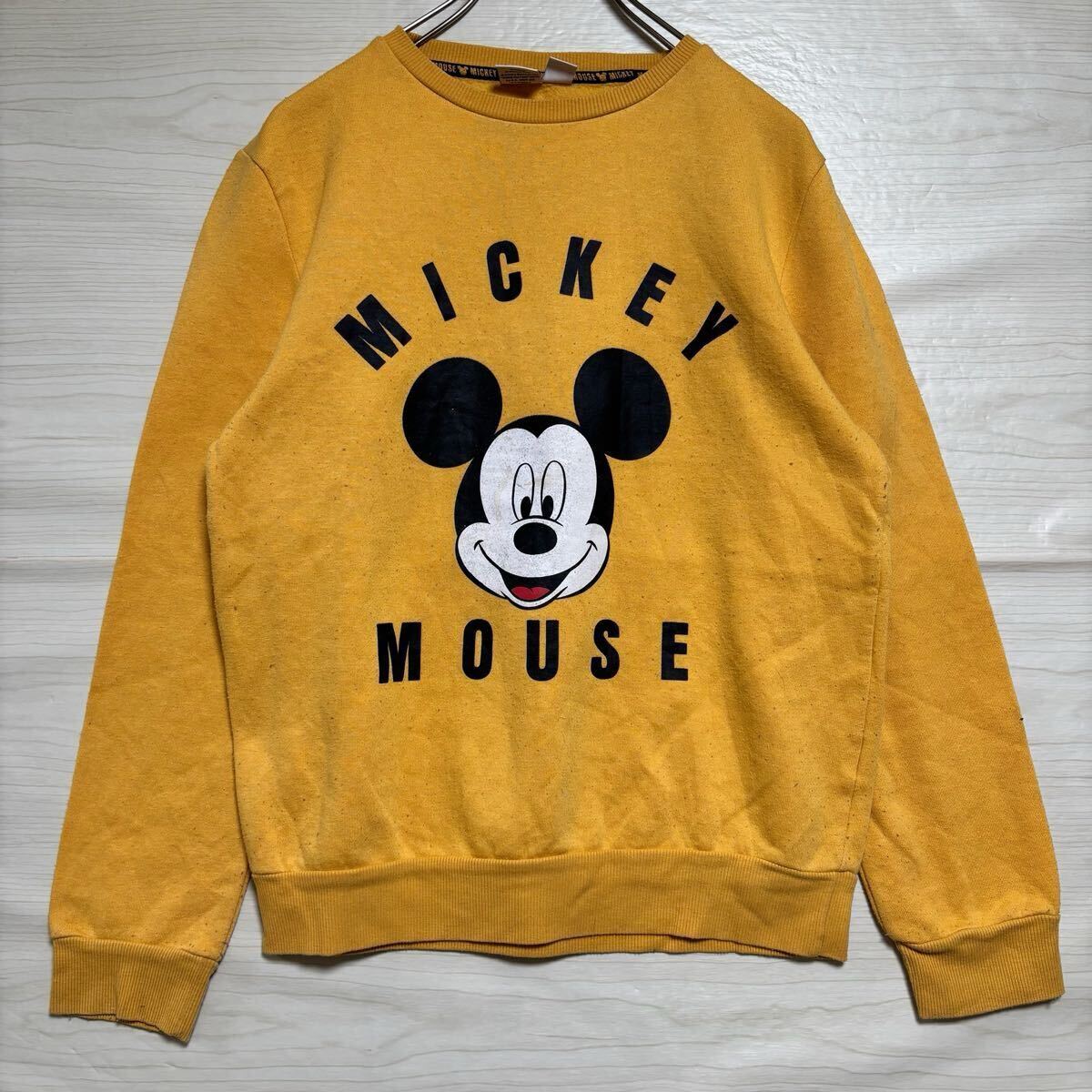 > Disney ディズニー スウェット トレーナー ミッキープリント ミッキーマウス サイズ2XS イエロー コットン メンズ トップス(40)