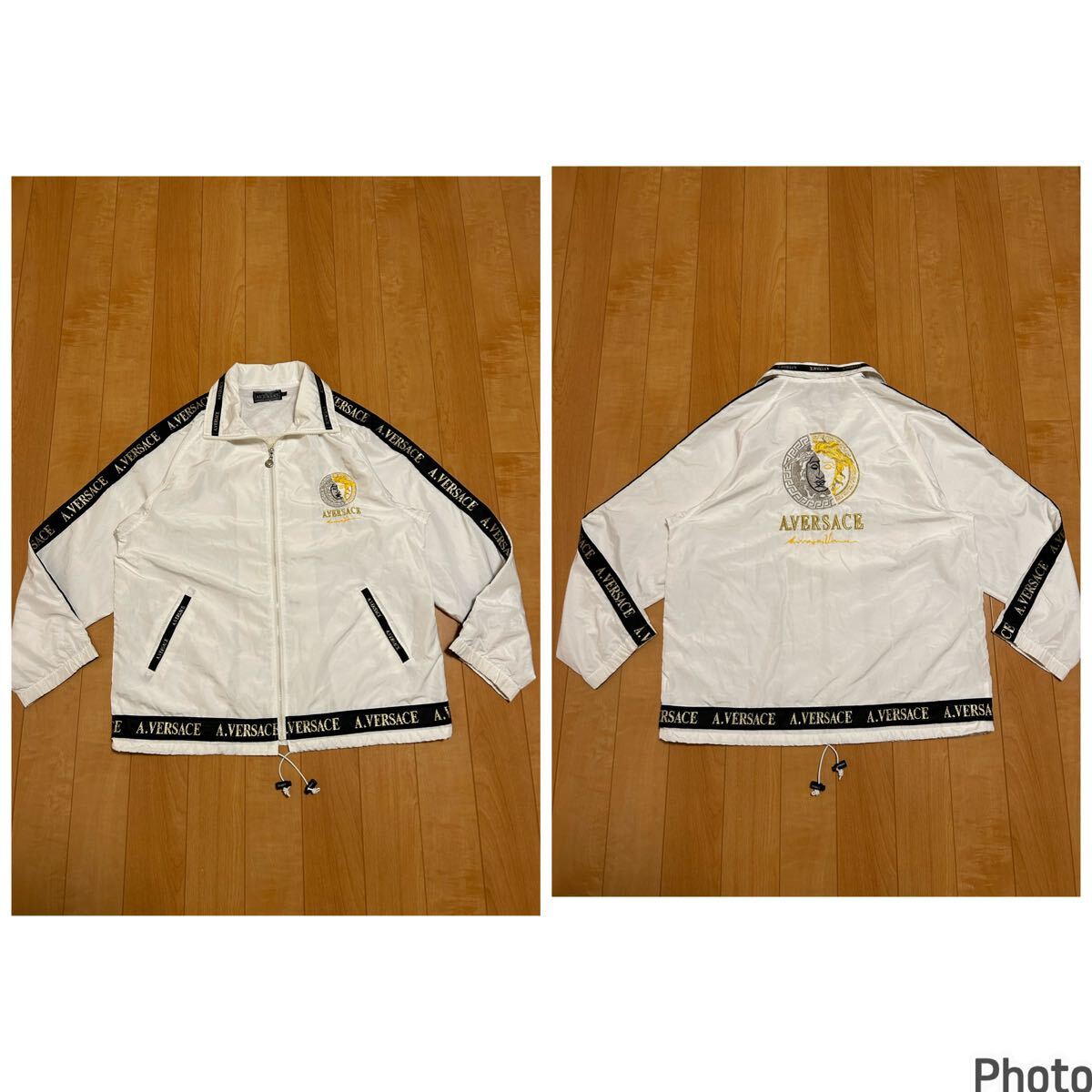 > 良品☆90s-Y2K・A.V/A.VERSACE オーバーサイズL大き目 裏メッシュ.フルジップナイロンジャケット BIGメデューサ刺繍&ロゴライン.フルデコ