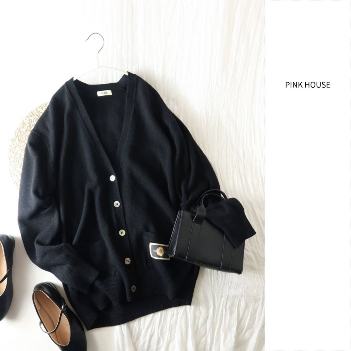 - ピンクハウス PINK HOUSE☆ネームワッペン使い ウールVネックカーディガン 日本製☆A-O 6318