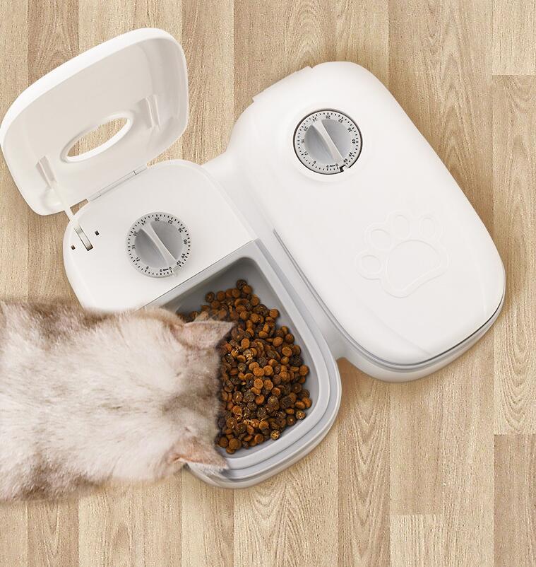 - 新入荷自動給餌器 オートペットフィーダー ペットフード自動餌やり機用犬&猫兼用タイマー式 タイムフィーダー エサ入れ 水洗い可能2食式
