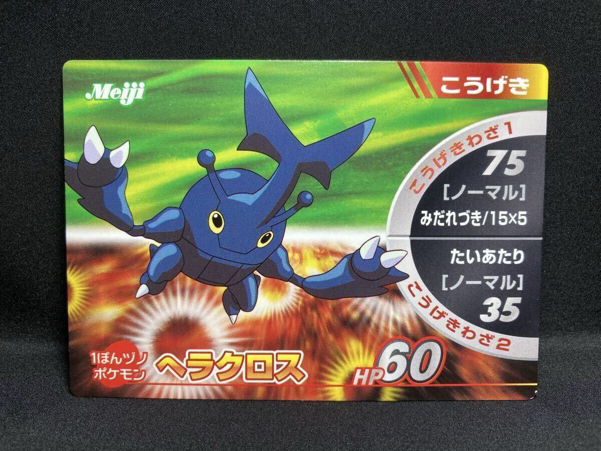 > 明治 ポケモン カード ヘラクロス こうげき ぼうぎょ 両面 絵違い じゃんけん 検 ゲット カードダス Meiji Pokemon Card Heracross