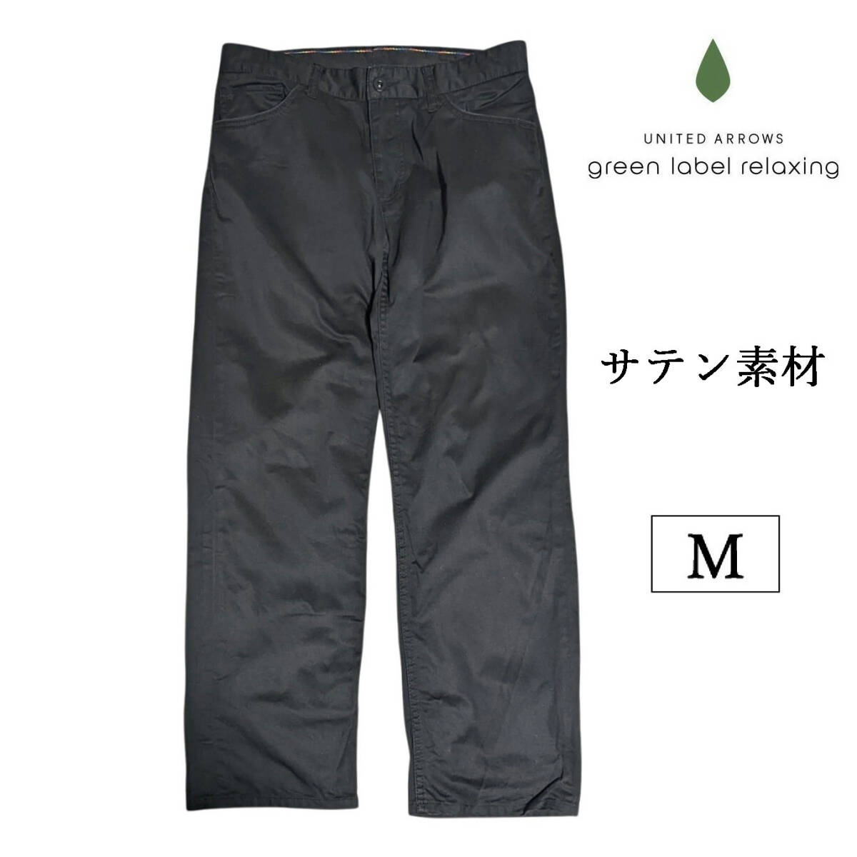 > green label relaxing DRYSATINPIPING5POCパンツ サテン スリムパンツ ストレート 黒 ブラック メンズ M UNITED ARROWS