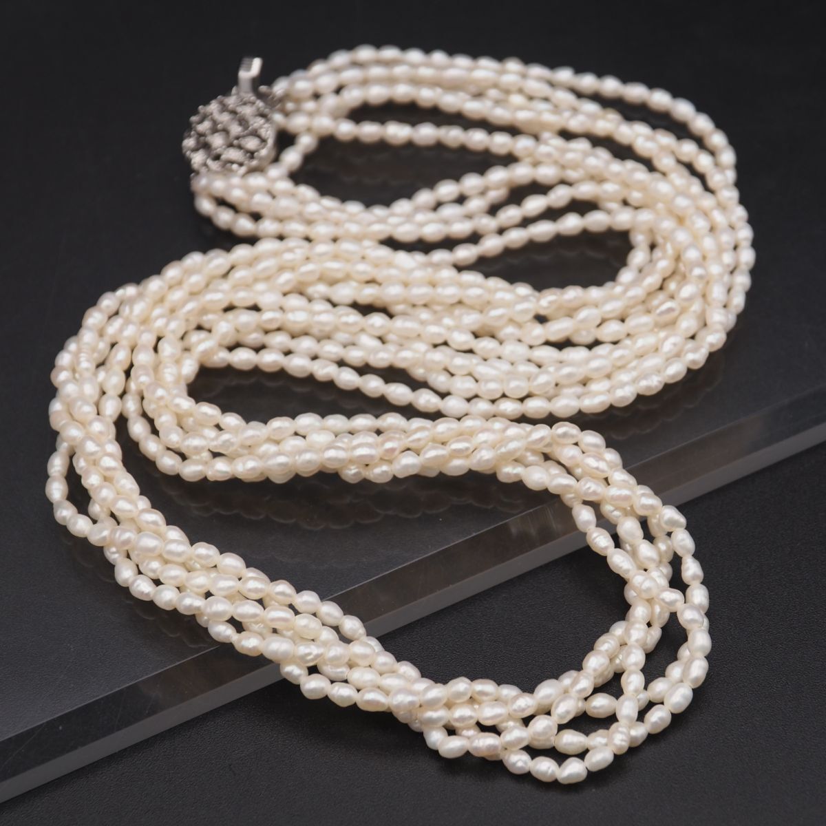 - H098 淡水真珠 パール SILVER刻印 ネックレス 5連 デザイン シルバー 6月誕生石