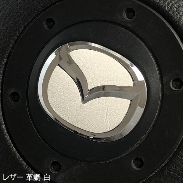 - マツダ ステアリング エンブレムシート レザー調 ホワイト 白 革調 簡単取付け ハンドル ZEROWIN MAZDA ドレスアップ 送料無料 日本製