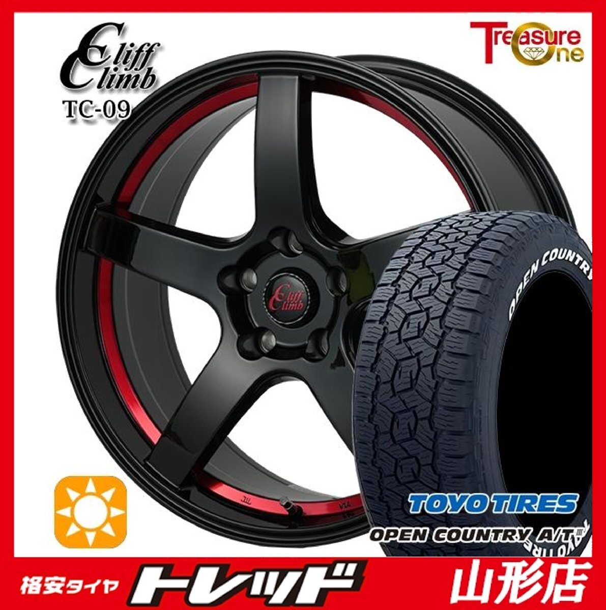 - 山形店 新品 夏タイヤホイールセット CliffClimb TC-09 17インチ 7.0j 5H114.3 +38 BKRED TOYO オープンカントリーA/T3 225/65R17 2025年製