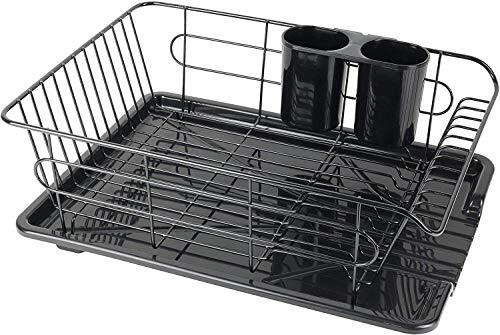 - パール金属 食器 水切り かご 水が流れる トレー付 ヨコ置き タイプ ブラック 黒 アルデオ HB-3467