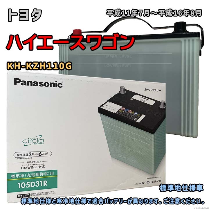 - バッテリー パナソニック N-105D31R/CR トヨタ ハイエースワゴン KH-KZH110G 平成11年7月~平成16年8月 対応 D31R 互換 57