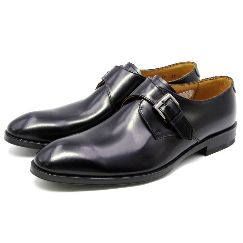 > 未使用 REGAL リーガル 25cm シングルモンク 813RAL ラウンドトゥ ビジネスシューズ 日本製 キップレザー ブラック 黒 35004920