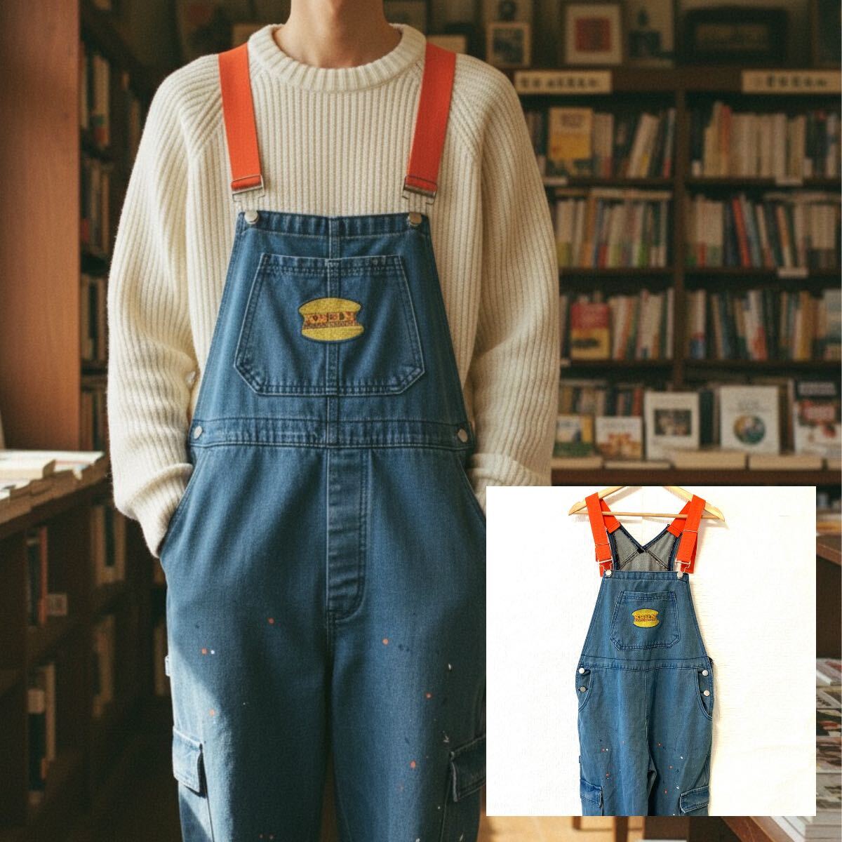 > ビッグサイズ!2XL!【Er Luo Shi Jia】エルオシカ デニム オーバーオール サロペット つなぎ ペイント柄 インディゴ メンズ/Y37542UU