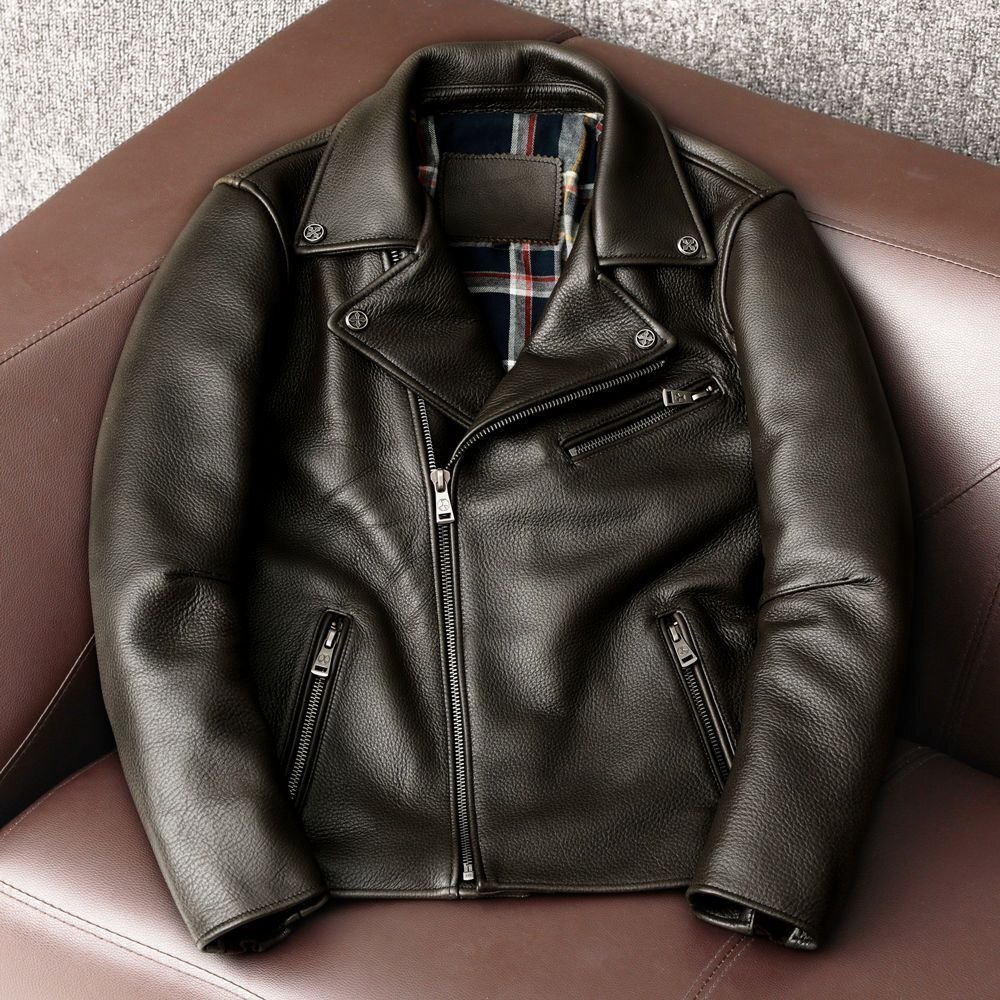 - 新入荷 レザージャケット 機関車 ライダースジャケット 本革 牛革 カウハイド ハーレー レザーコート バイクレザー 革ジャン
