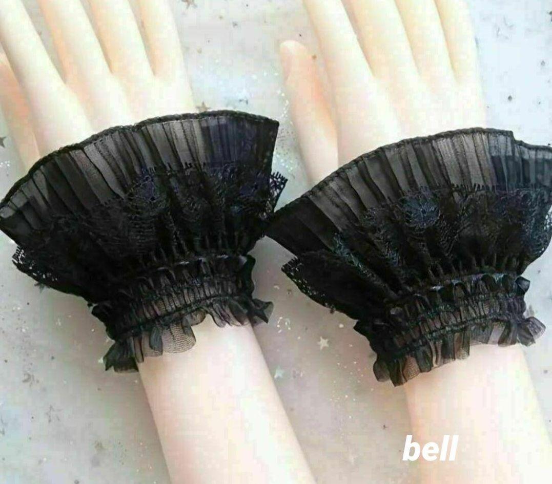- ラスト1点 黒 カフス 付け袖 アームカバー レース フリル プリーツ つけ袖 二重袖