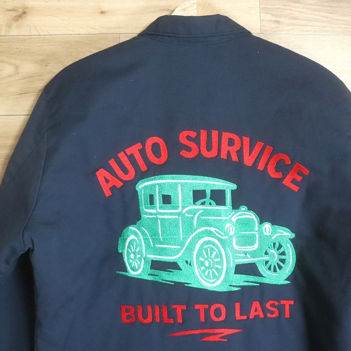 > N2T/D10.28-1 アメリカ古着 米国製 RED KAP レッドキャップ ワークジャケット M バック刺繍 車 AUTO SERVICE BUILT TO LAST