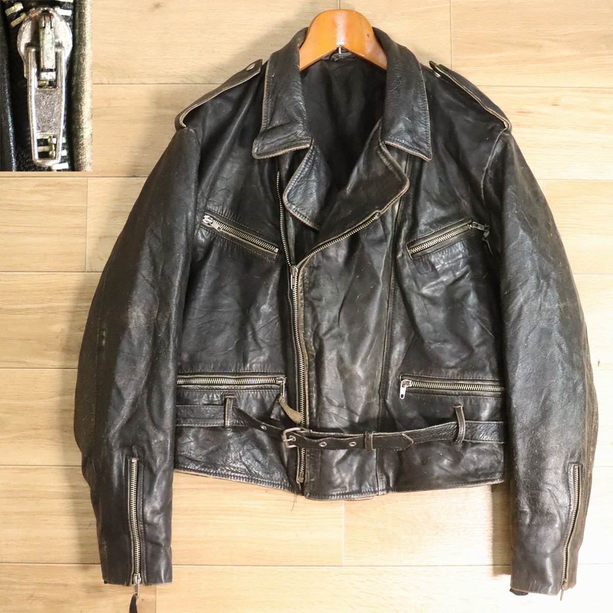 - B20D/Y5.14-2 ユーロ古着 ダブルライダースジャケット 本革 レザージャケット M レザーブルゾン 革ジャン ブラック バイカー