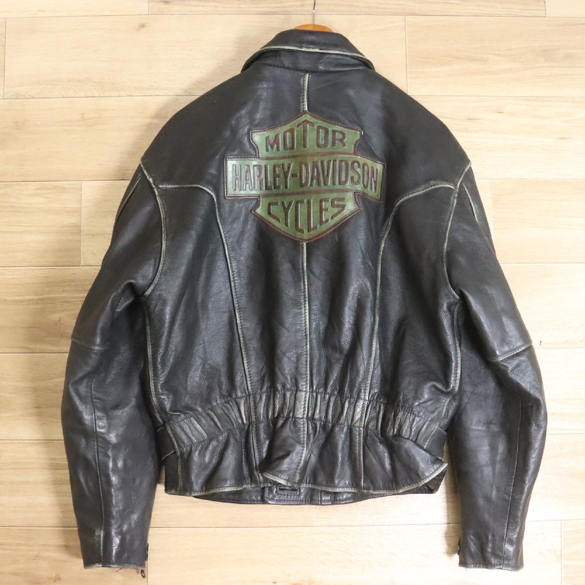 > @3K/Y5.9-2 ユーロ古着 Louis レザーモーターサイクルジャケット 本革 レザージャケット ライダースジャケット ハーレーワッペン L