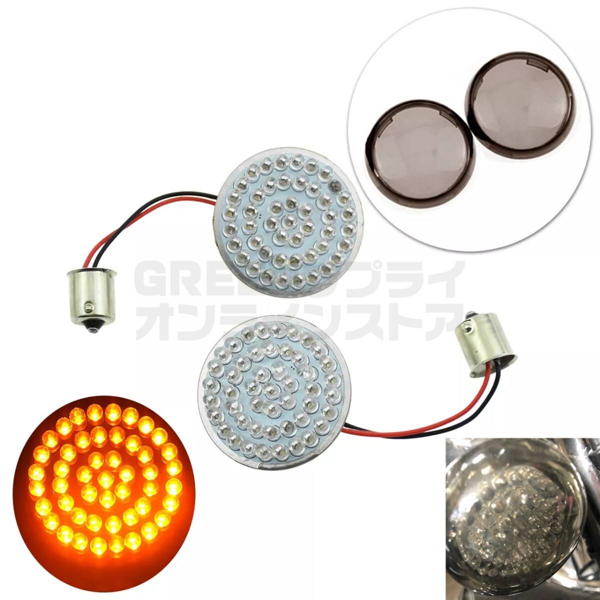 - 高級高輝度 ハーレー 用 48 LED ウインカー カバー ブラック スモーク