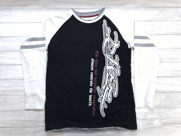 > DJ Free 00s レトロ オールド ストリート ネオグランジ 配色切替 英字プリント ラグラン 長袖Tシャツ ロンT メンズ コットン100% L 黒白