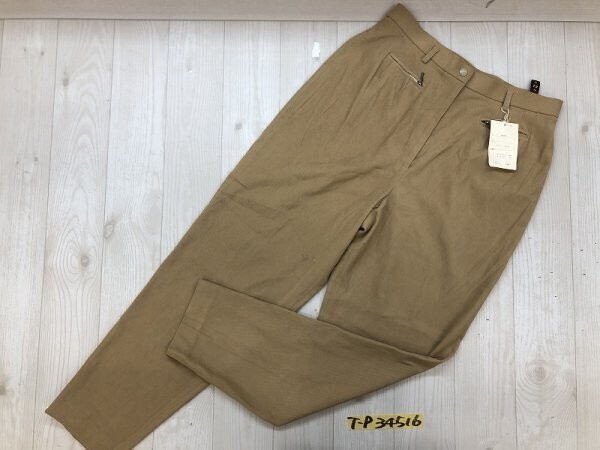 - 訳あり新品!レディース ミニポケットファスナー付き 鹿の子 ストレッチ テーパードパンツ 72 黄土色