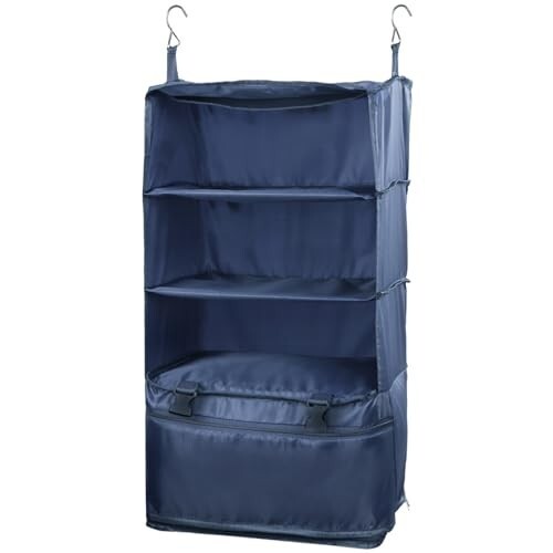 - ICHIFUJI 吊り下げトラベルポーチ L 撥水メッシュ 4段 ネイビー 大容量 折りたたみ