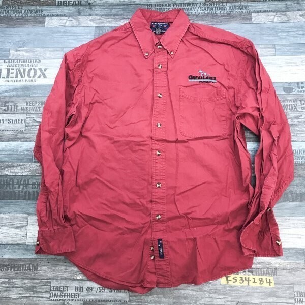 - PORT AUTHORITY メンズ 企業名 刺繍入り コットン 100% ボタンダウン 長袖シャツ L 赤