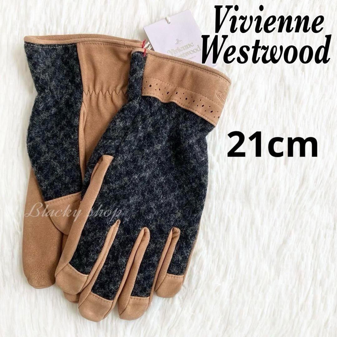 - ヴィヴィアン ウエストウッド 手袋 ニット スウェード レザー グローブ 未使用 タグ付き レディース グレー×キャメル 21cm オーブ 刻印
