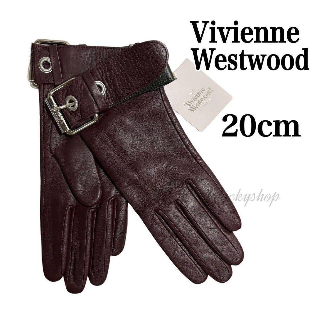 - ヴィヴィアン ウエストウッド 手袋 レザー グローブ カフス ベルト バックル 未使用 タグ付き レディース ブラウン 20cm 羊革 ロゴ 金具