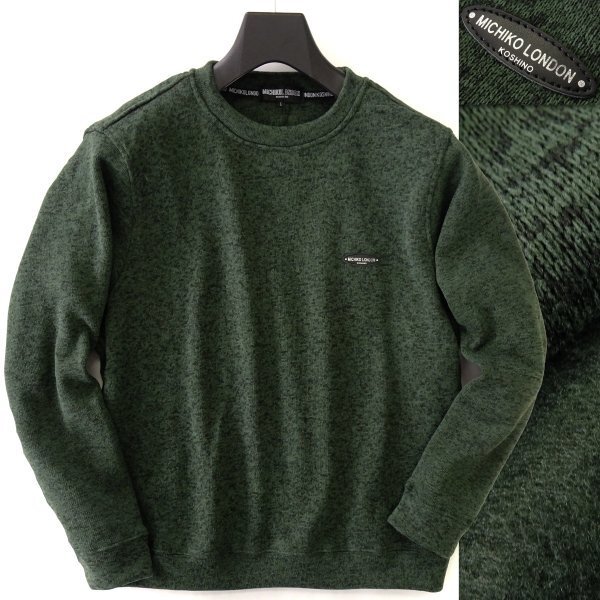 - 新品 ミチコロンドン 裏起毛 ニット フリース プルオーバー L 深緑 【ML8W-R550_DGE_L】MICHIKO LONDON 秋冬 クルーネック トレーナー