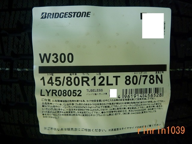 > 【送料無料】冬タイヤ2025年製 BRIDGESTONE W300 145/80R12LT 80/78N 4本セット税込¥21,800-