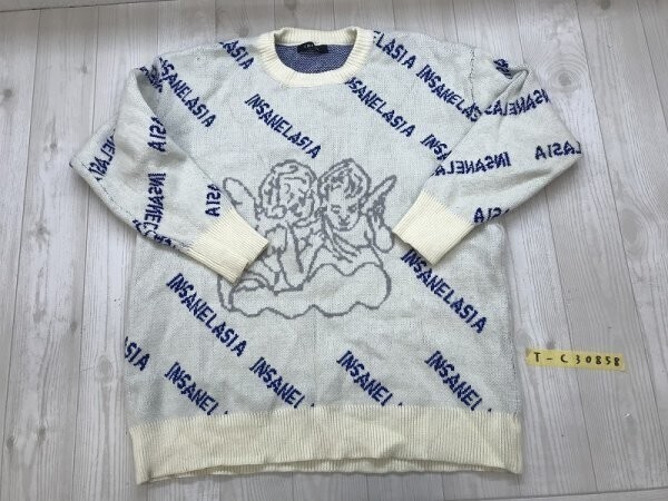 - CHUGE STYLE レディース 天使モチーフ もちもち ニットセーター アイボリー青