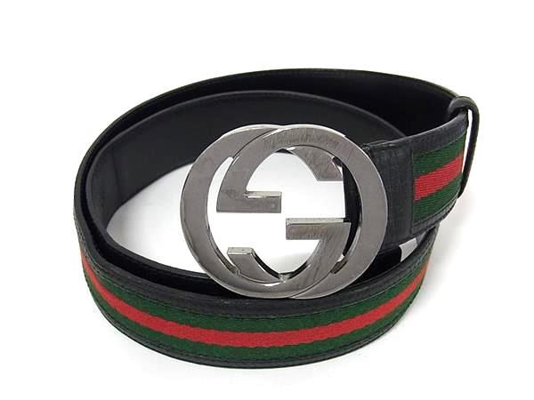 - 1円 GUCCI グッチ 114984 486539 インターロッキングG シェリーライン レザー シルバー金具 ベルト ブラック系 FR6544