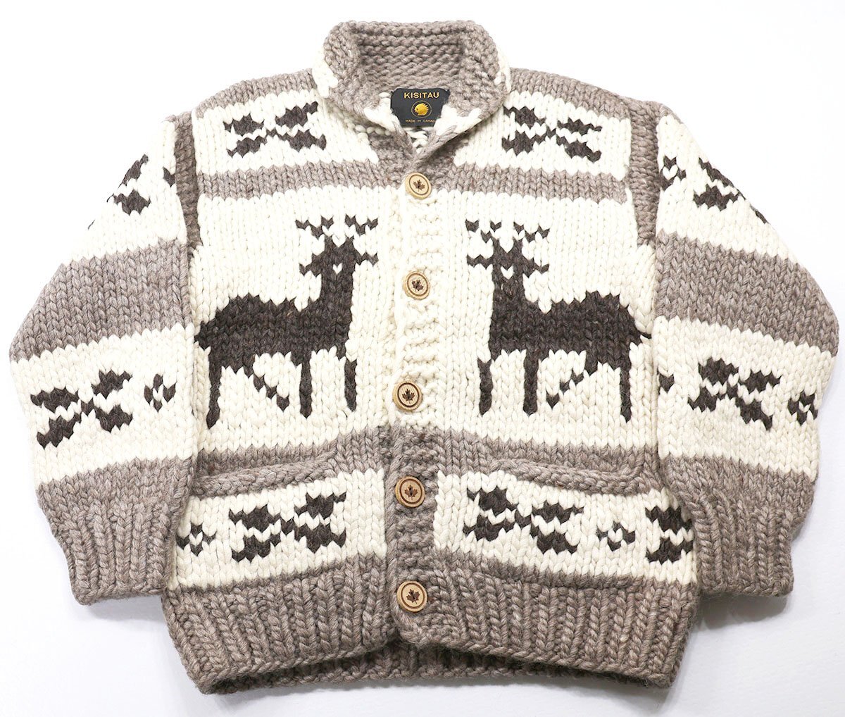 - KISITAU (キシタウ) Cowichan Sweater - Reindeer - / トナカイ柄 カウチンセーター 美品 カナダ製 / ハンドメイドニット