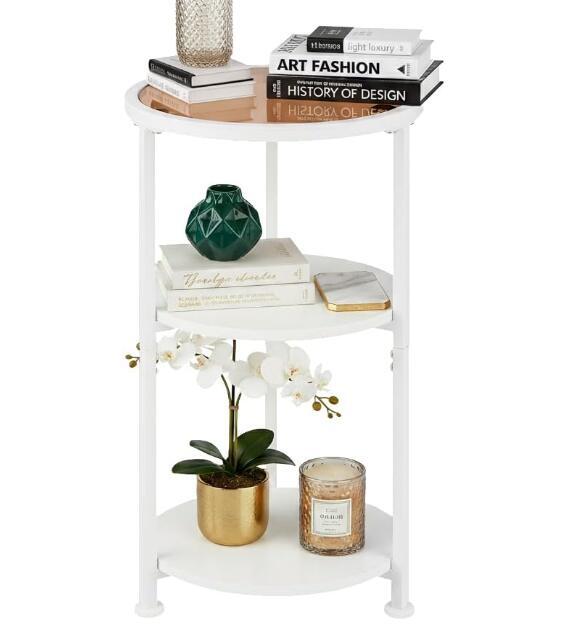 - サイドテーブル 3段収納 ガラス天板 円形 省スペース リビング ベッドサイド 幅30cm すっきり 50 キログラム