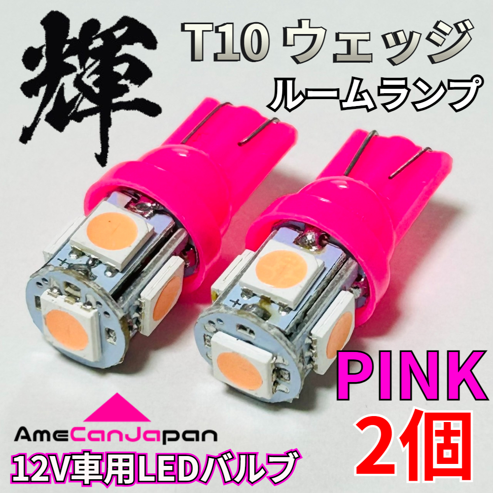 - AmeCanJapan 高輝度 T10 LED 車用 ピンク ルームランプ SMD5050 5連 室内灯 車内灯 パーツ カスタム ウェッジ球 車検対応 2個 輝