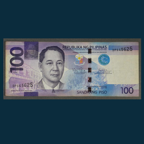 - フィリピン〔 100ペソ紙幣〕マヌエル・ロハス元大統領 マヨン山 ジンベイザメ t0257