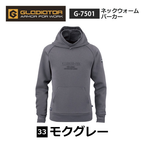 > コーコス グラディエーター 秋冬 軽防寒 パーカー 【 G-7501 】 ネックウォームパーカー ■XXLサイズ■ モクグレー色 3WAY 消臭