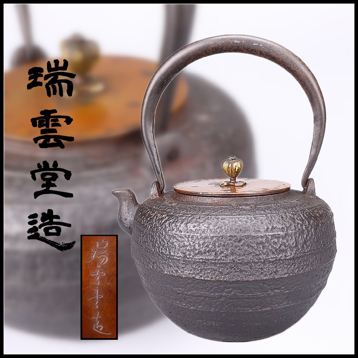 【吉】TA787 時代 【瑞雲堂造】 土器芋形 鉄瓶/水漏れ無し及び修復無し保証 美品!拍卖