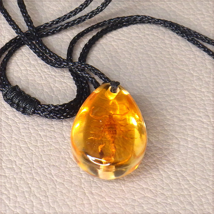 - [PENDANT NECKLACE] 琥珀の中に閉じ込められた昆虫デザイン ティアドロップ レジン ペンダント ネックレス (蠍 サソリ) 【送料無料】