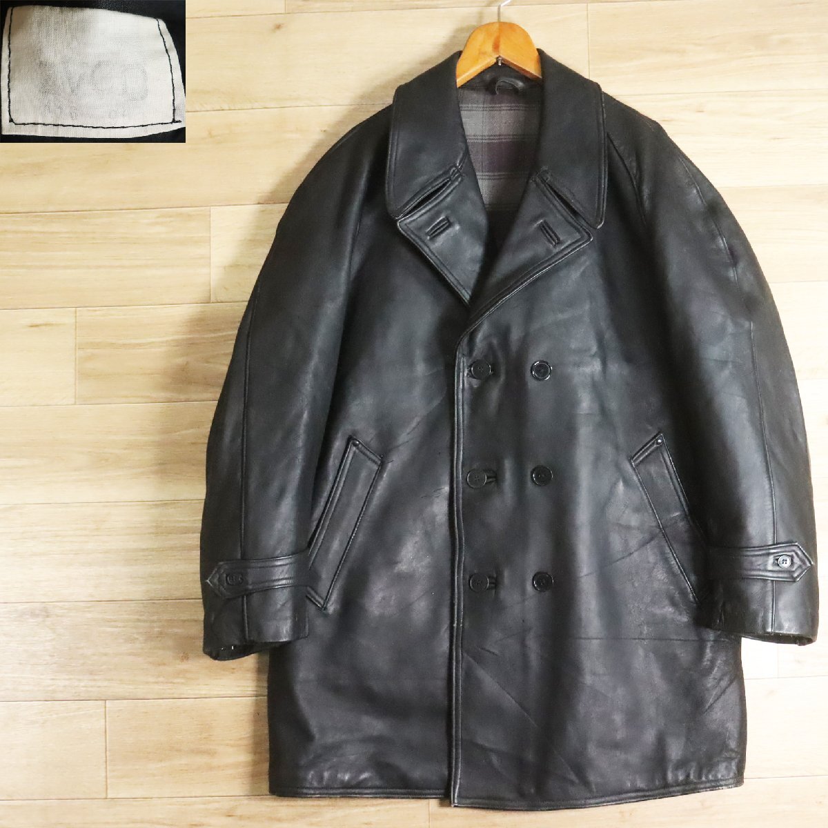 - D7S/S5.27-3 ユーロ古着 フランス ZVCD レザーカーコート 本革 ダブルブレスト レザージャケット ポリスマン ヴィンテージ