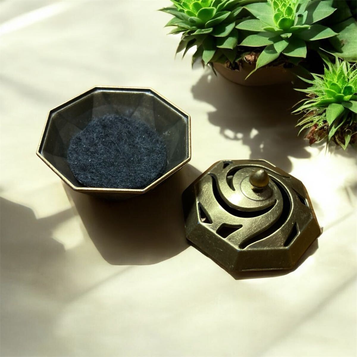 - 【お香立て】八角形 香炉 縁起物 金属製 モダン 置物 オブジェ インテリア 風水 お香 アジアン エスニック アンティーク