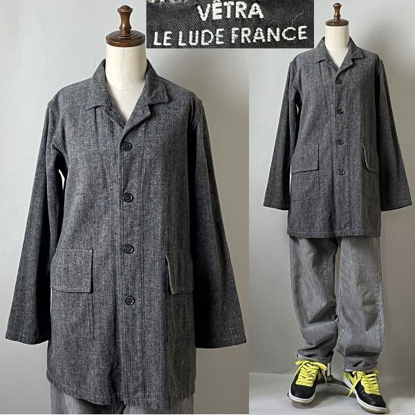> ★【国内正規品 フランス製】 VETRA べトラ コットン100% ヘリンボーン カバーオール ワークジャケット ボーイズサイズ18(XS相当)グレー