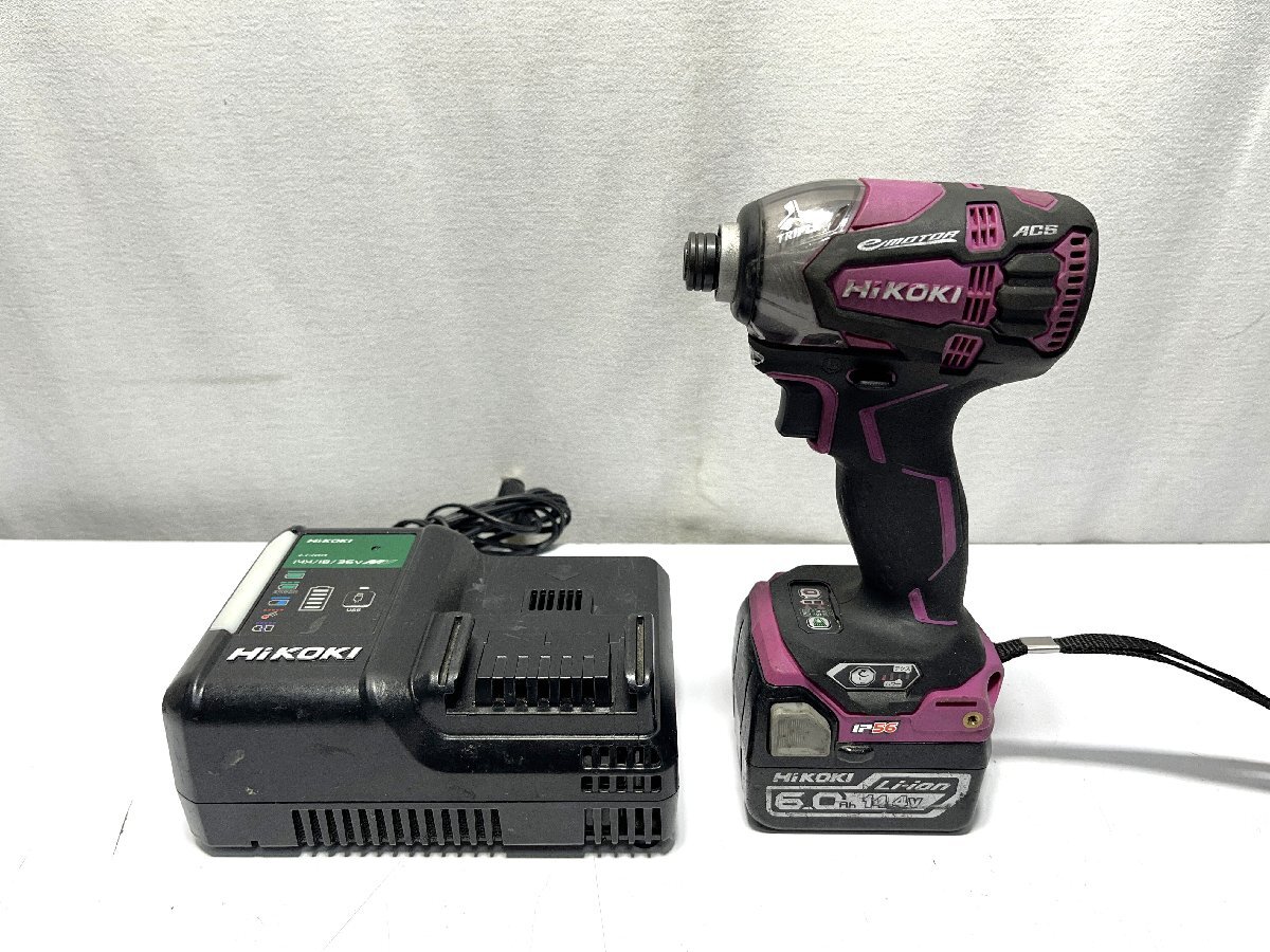 > ▽HiKOKI ハイコーキ コードレスインパクトドライバ DC14.4V 6.0Ah 蓄電池×1個 充電器付き 中古・簡単な動作確認のみ▽012283