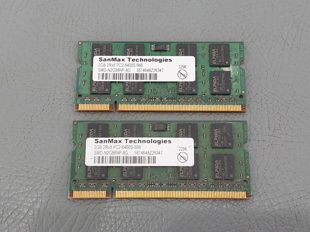 - 【メモリ管③】☆☆2枚セット☆☆ サンマックス/SanMax PC2-5300S-555 2Rx8 DDR2 2GB メモリ 合計4GB