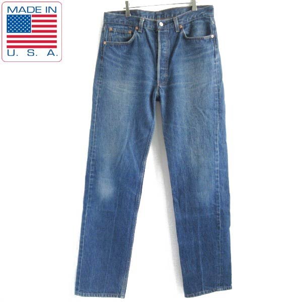 > 90s USA製 リーバイス501 ヒゲ ジーンズ 濃いめ 実寸W34 L32.5 ジーパン デニム アメリカ製 ビンテージ D148-21-0077ZTW